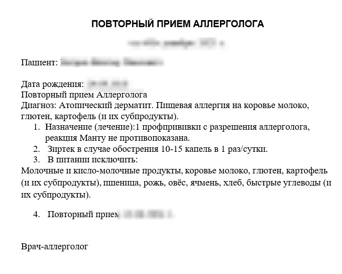 - внесение данных в карту ребенка-аллергика в школе, детском саду (организация безопасного питания, постановка на учет).